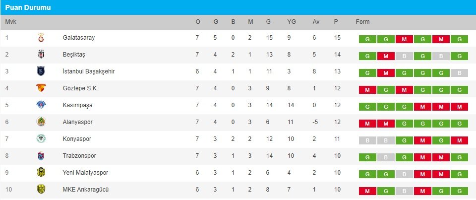 SÜPER LİG 8. HAFTA FİKSTÜRÜ