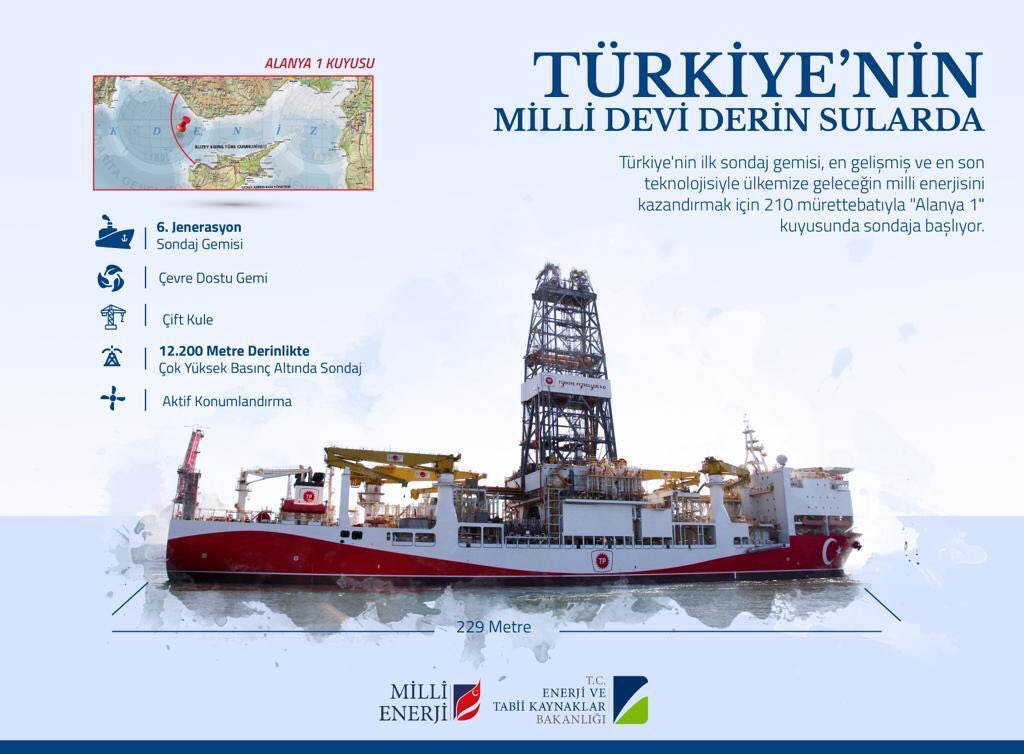 Türkiye Petrolleri Anonim Ortaklığı’nın (TPAO) sondaj gemisi Fatih, Antalya açıklarındaki Alanya-1 kuyusunda yapılacak çalışmalar için yola çıktı.
