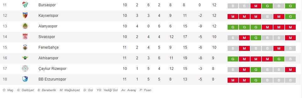 SÜPER LİG PUAN DURUMU