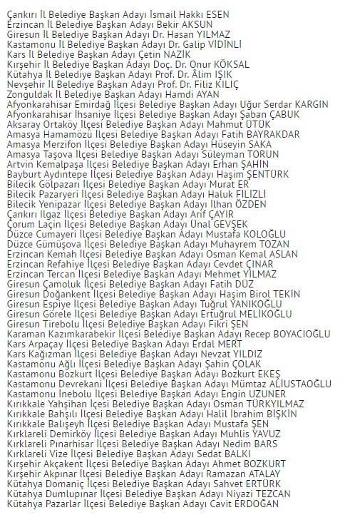 Yeni açıklanan isimlerin 9’u il 41’i ise ilçe belediyeleri için aday gösterildi.