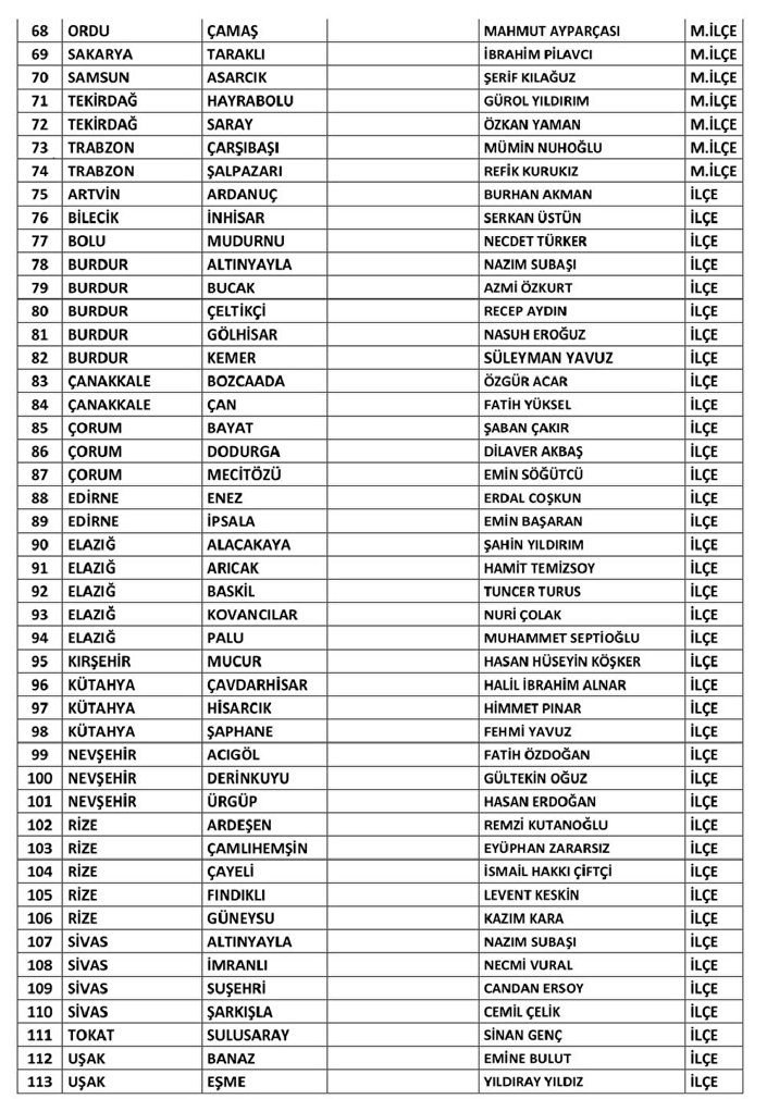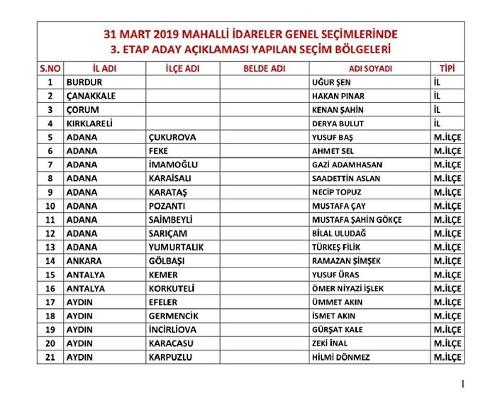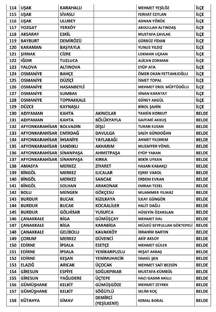 Parti Burdur’dan Uğur Şen’in, Çanakkale’den Hakan Pınar’ın, Çorum’dan Kenan Şahin’in ve Kırklareli’den Derya Bulut’un aday gösterildiğini duyurdu.