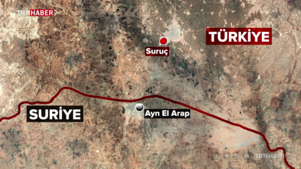 En batıda yer alan yerleşim birimi Ayn el Arab, Şanlıurfa’nın Suruç ilçesinin hemen karşısında bulunuyor. Bölge 2014’te terör örgütü DEAŞ, bir yıl sonra da PKK/PYD tarafından işgal edilmişti.