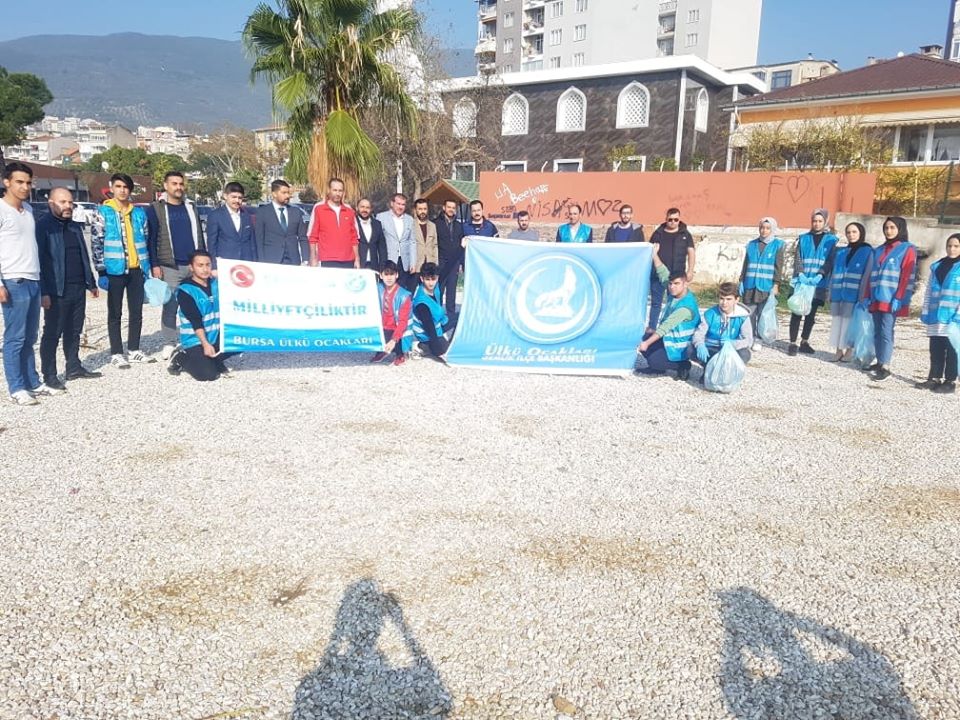 Bursa Ülkü Ocakları 9 Işık’ın 1. maddesi olan Milliyetçilik maddesine atıfla 9 İlçe ve Mahalli Ocak ile çevre temizliğinde bulundular.