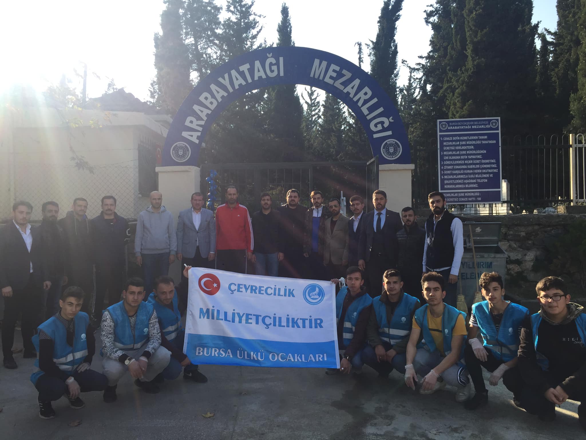 Yıldırım Ülkü Ocakları Başkanı; Ömer Faruk Hacet, Yönetimi ve Liseli Bozkurtlar’ımız tarafından Pınarbaşı Mezarlığında çevre temizliği yapılarak, Ülkücü Şehitlerimizi dua ile yâd ettik.