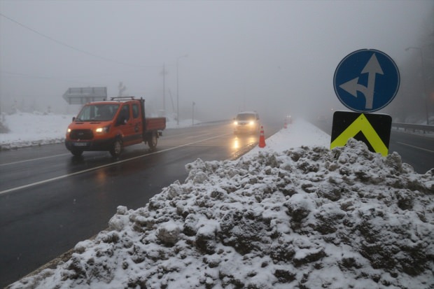 Kar yağışının yanı sıra sis nedeniyle görüş mesafesi yer yer 30 metreye kadar düştü.