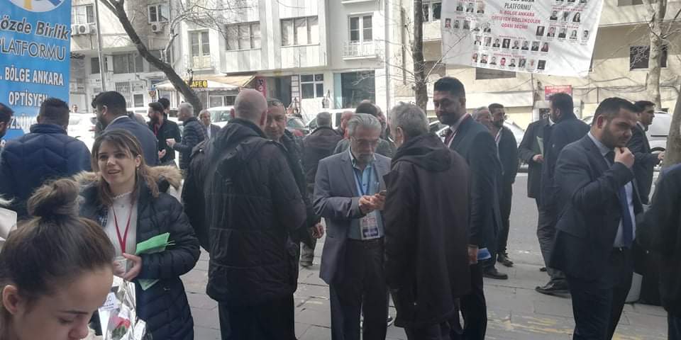Ankara Necatibey Caddesindeki Belediye İş Sendikası Genel Merkez toplantı salonunda yapılan Genel Kurula, Ankara, Eskişehir, Çankırı, Çorum ve Kırıkkale illerini temsil edecek mümessillik seçimi büyük heyecan ve olgunluk içinde geçti..